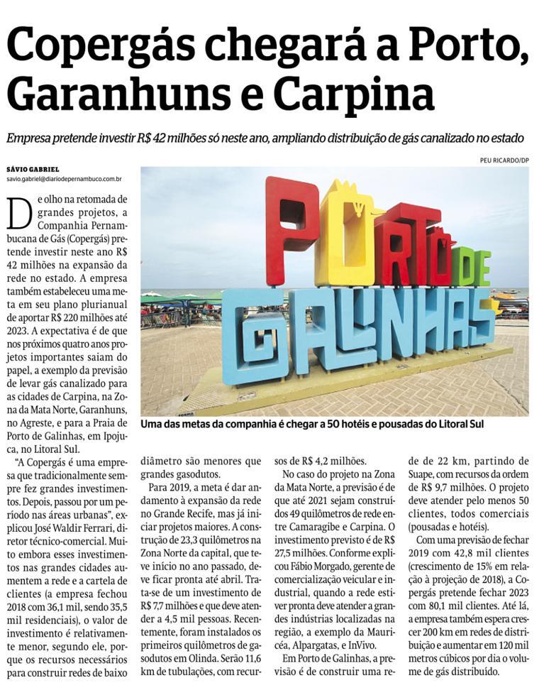 COPERGÁS CHEGARÁ A PORTO, GARANHUNS E CARPINA Publicada em 10/01/2019 11:10 - Atualizada 11/02/2023 15:49 Compartilhe: