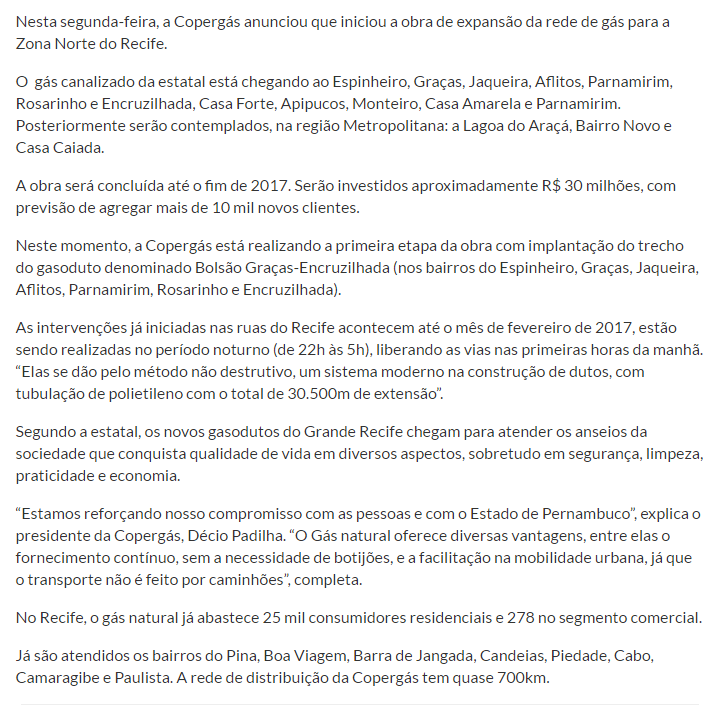 Boa notícia: Copergás amplia acesso ao gás natural para residências e comercio do Grande Recife Publicada em 26/12/2016 18:32 - Atualizada 11/02/2023 17:35 Blog de Jamildo – 26/12/2016 – 16h01 Compartilhe: