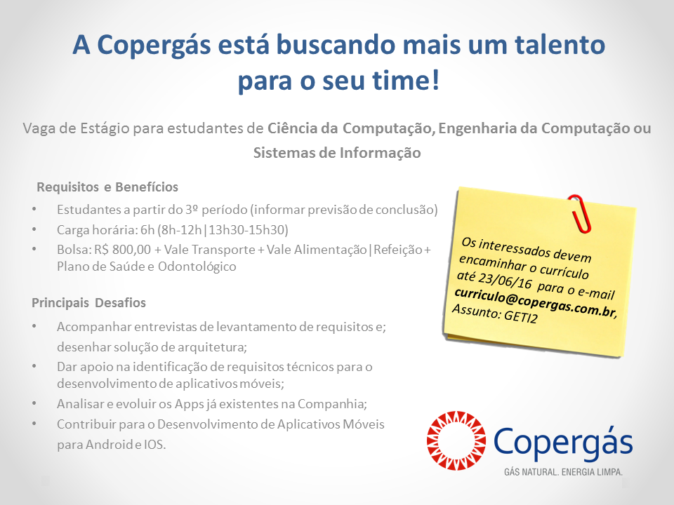 Chance para os estudantes de Ciências da Computação, Engenharia da Computação ou Sistemas de Informação: Publicada em 17/06/2016 18:19 - Atualizada 11/02/2023 17:46 Compartilhe: