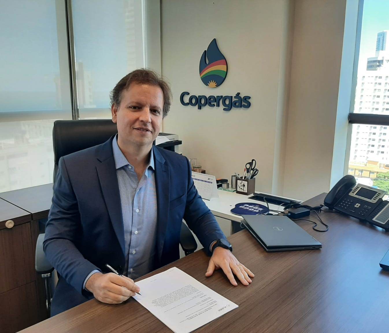 O administrador especialista em Finanças Corporativas Felipe Valença tomou posse, nesta terça-feira (02), como Diretor-Presidente da Copergás. Ele foi eleito pelo Conselho de Administração da Companhia na última quarta-feira (26/04). Felipe sucede André Campos, que esteve à frente da empresa nos últimos quatro anos.