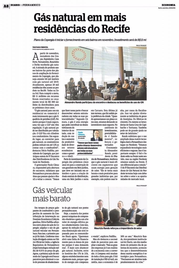Gás natural em mais residências do Recife Publicada em 23/05/2016 12:05 - Atualizada 11/02/2023 17:51 Compartilhe: