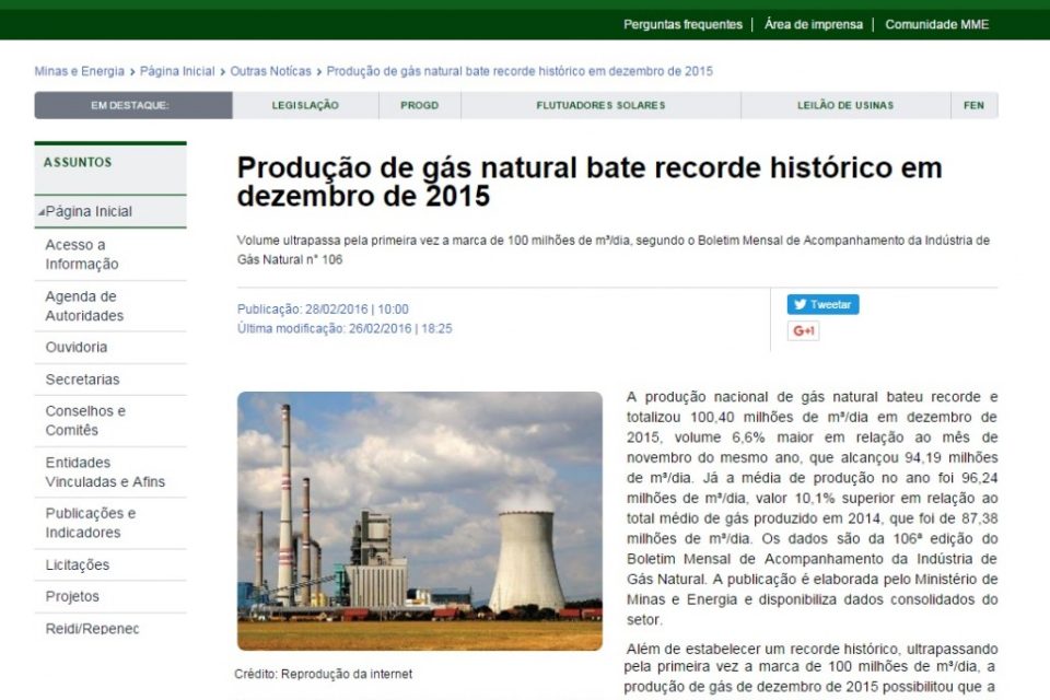 Mais de 100 milhões de metros cúbicos/dia