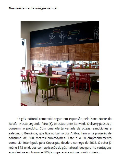 Novo restaurante com gás natural Publicada em 06/02/2018 16:17 - Atualizada 11/02/2023 16:34 Compartilhe:
