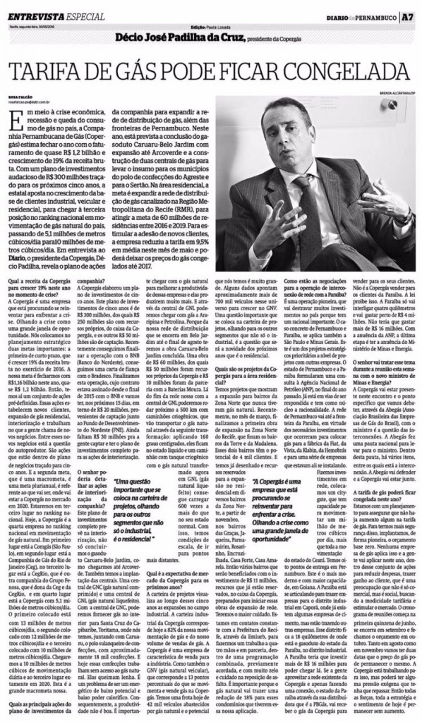 Tarifa de gás pode ficar congelada Publicada em 30/05/2016 14:33 - Atualizada 11/02/2023 17:49 Compartilhe: